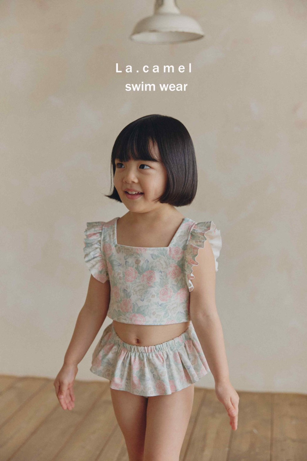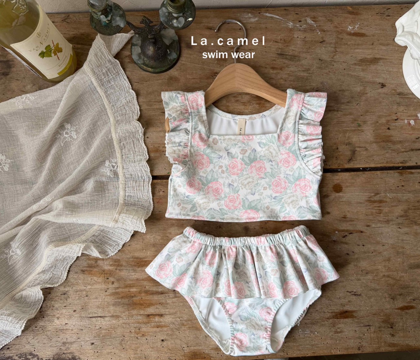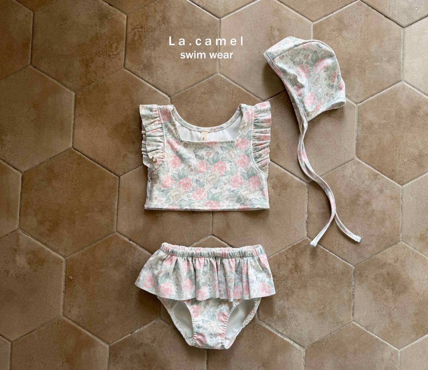 玫瑰小圓舞曲荷葉邊泳裝/泳帽