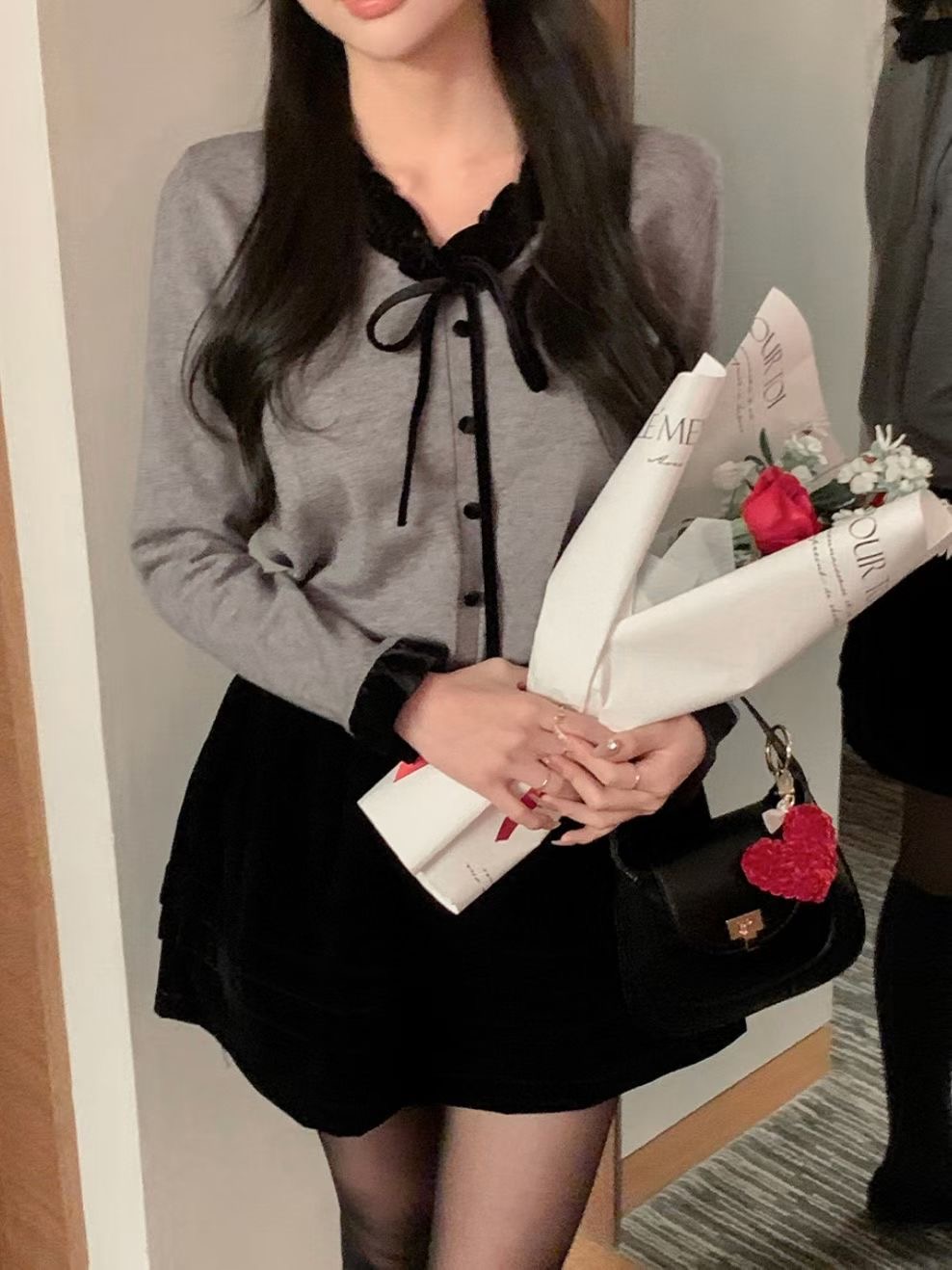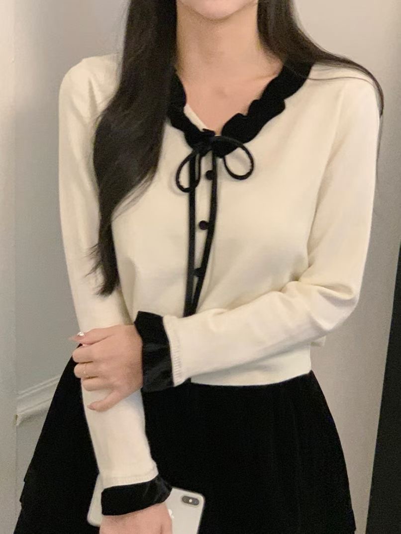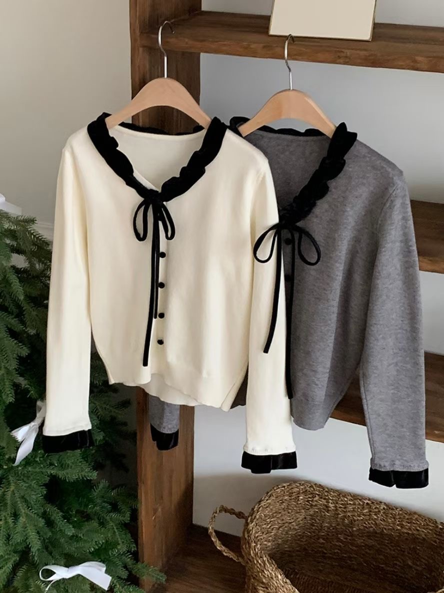 絲絨滾邊繫帶開衫