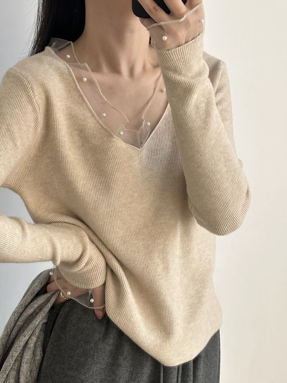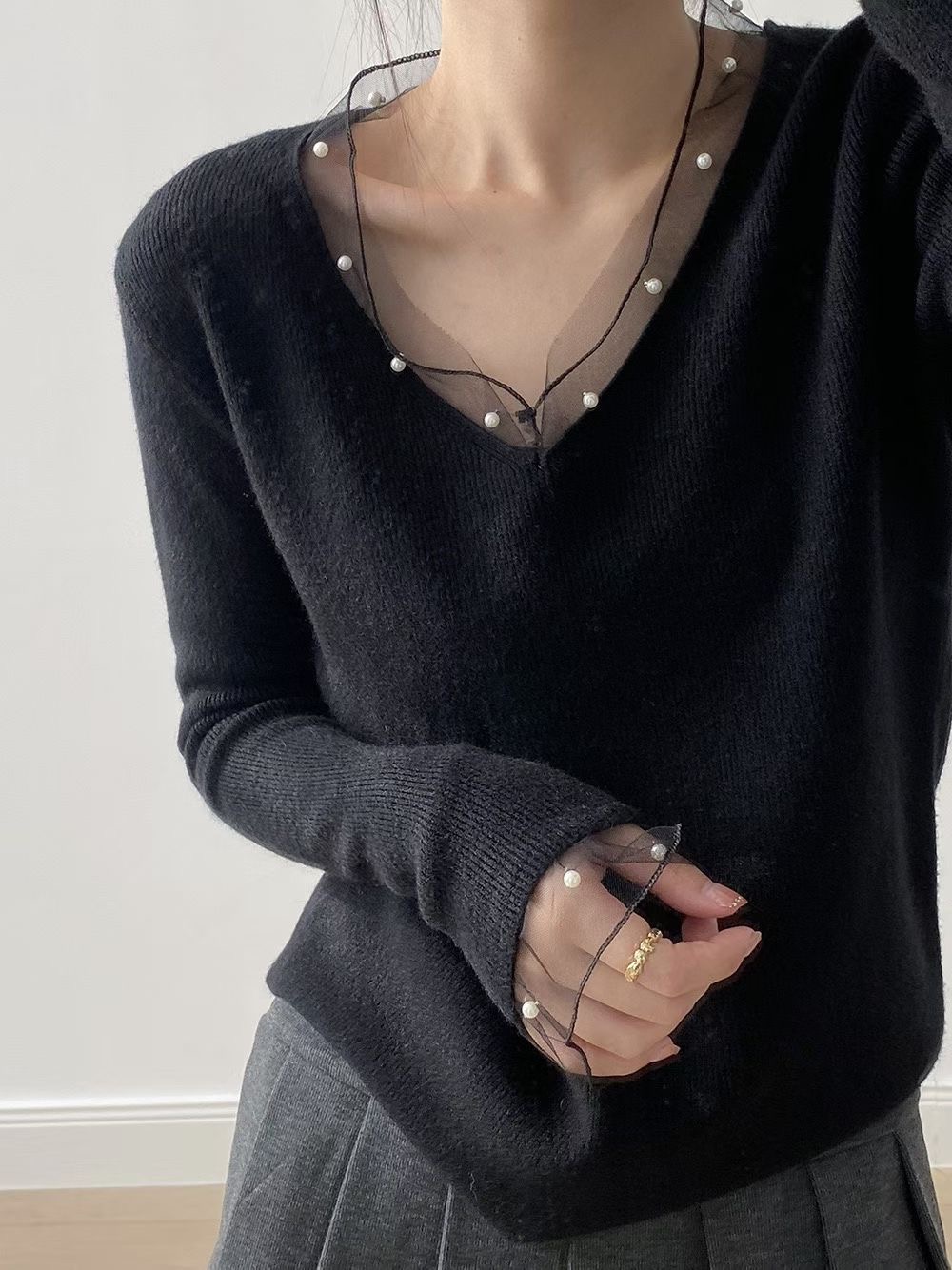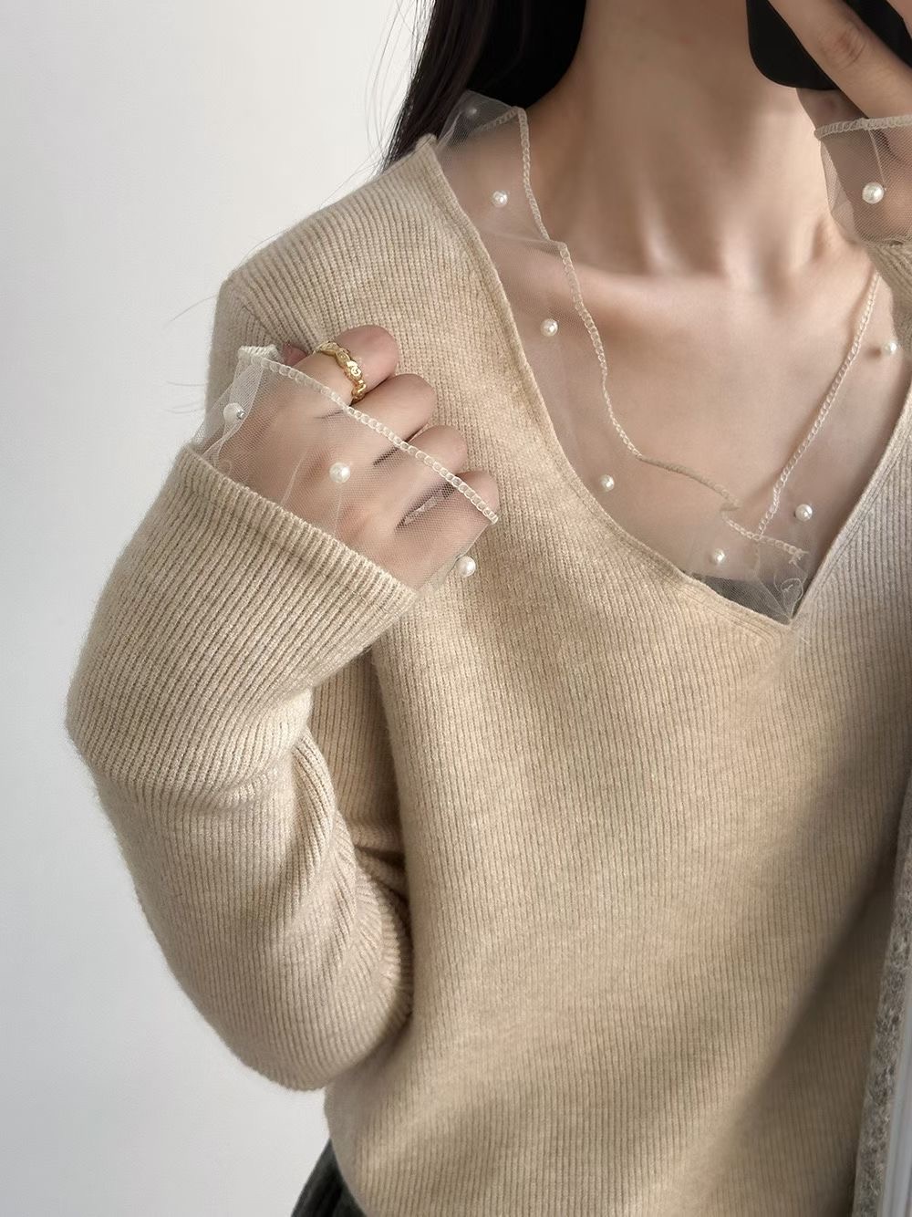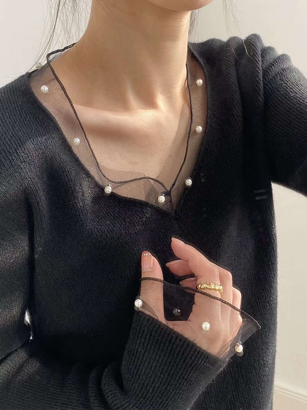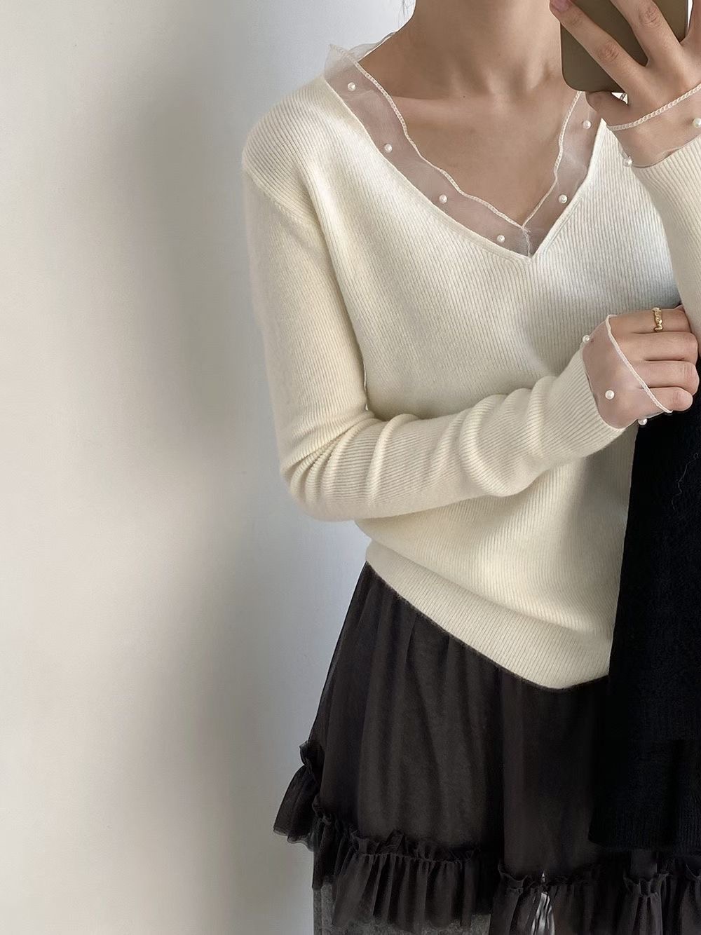 網紗珍珠針織衫