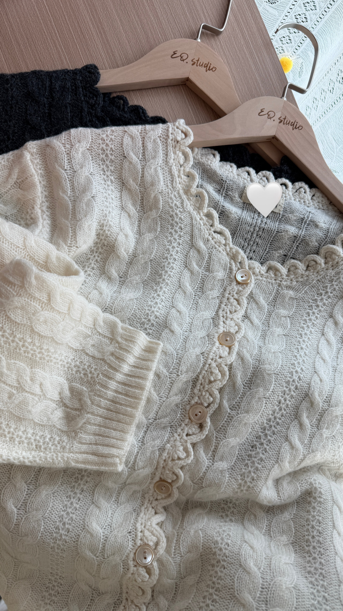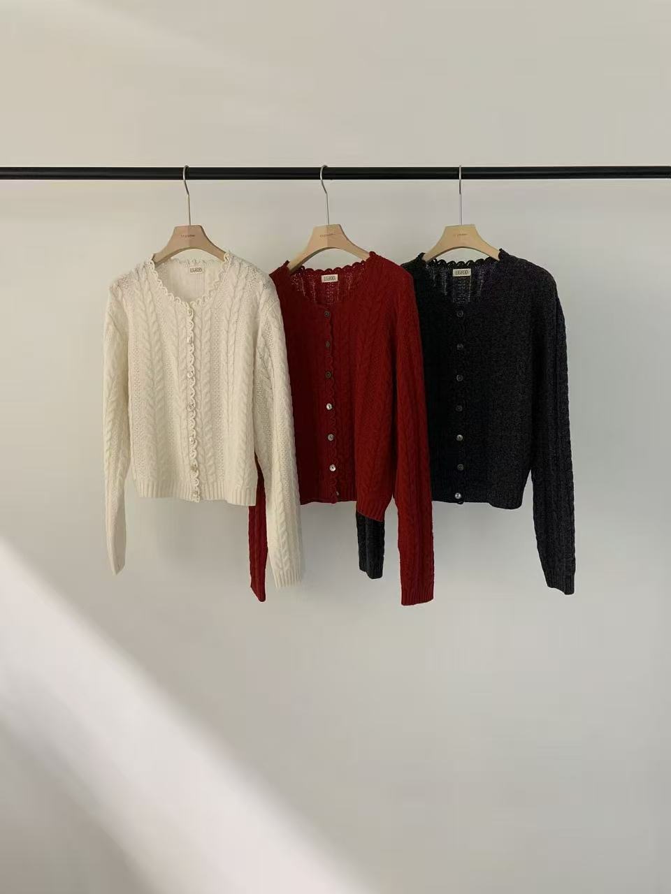 蕾絲微瀾羊毛開襟衫